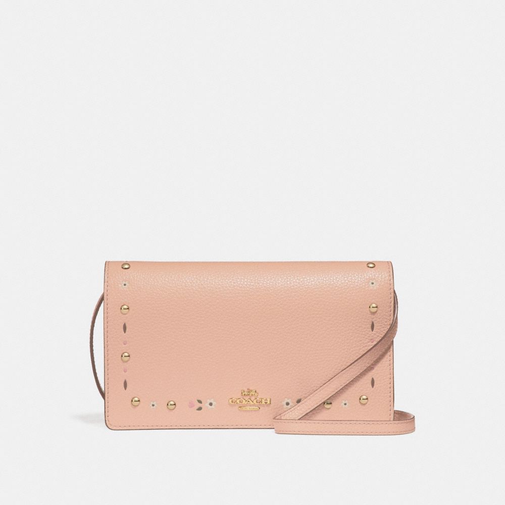 FOLDOVER CROSSBODY CLUTCH WITH FLORAL TOOLING