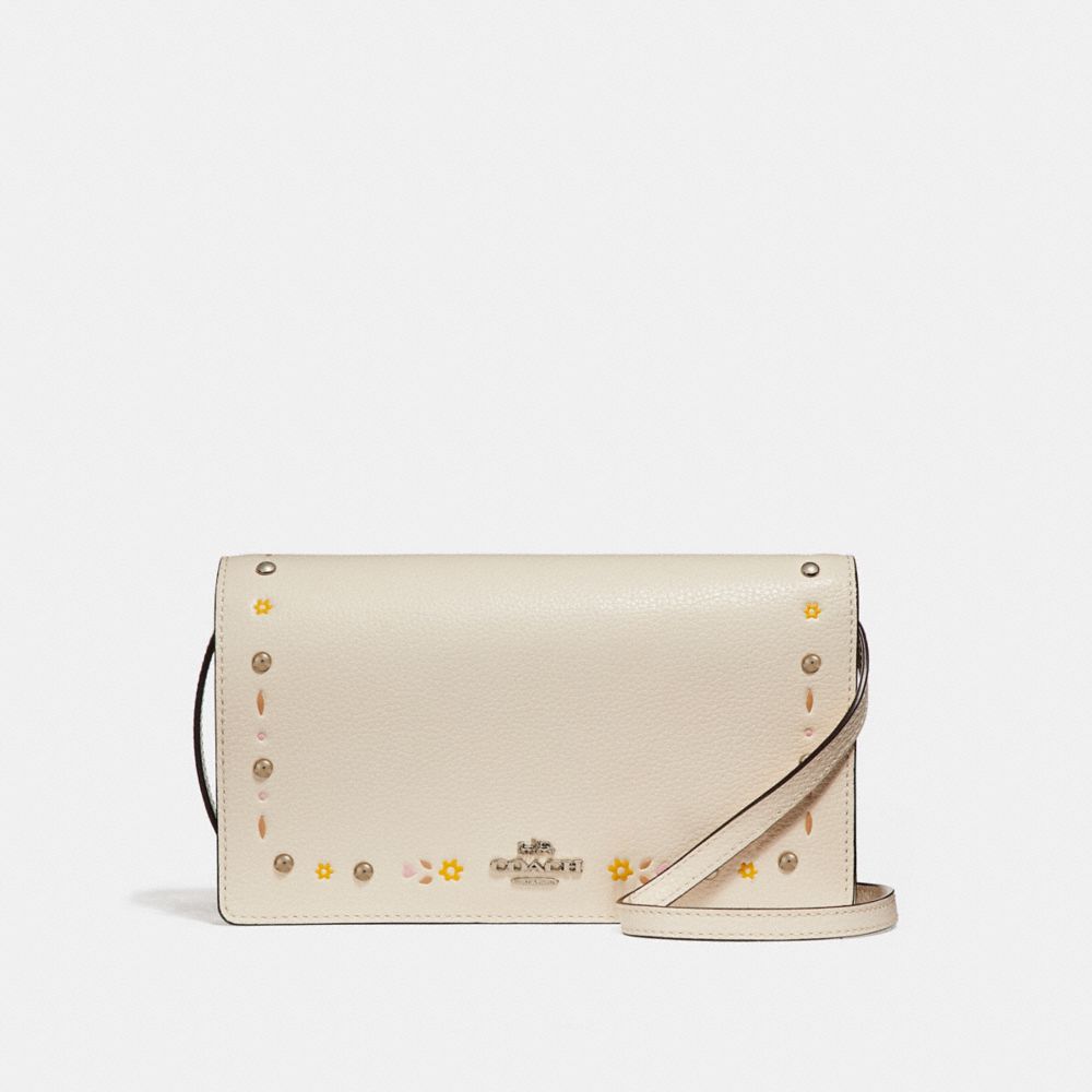 FOLDOVER CROSSBODY CLUTCH WITH FLORAL TOOLING