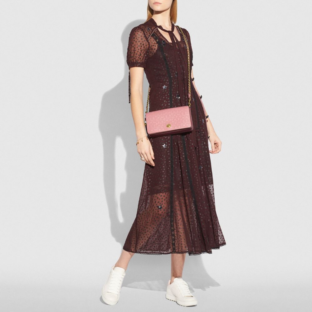 Signature refined calf leather | Inside open and coin purse pockets| Turnlock closure, leather lining| Outside slip pocket| Detachable strap with 22" drop doubles up for three ways to wear: short or long on the shoulder or crossbody style| 9" (L) x 5" (H) x 2" (W)