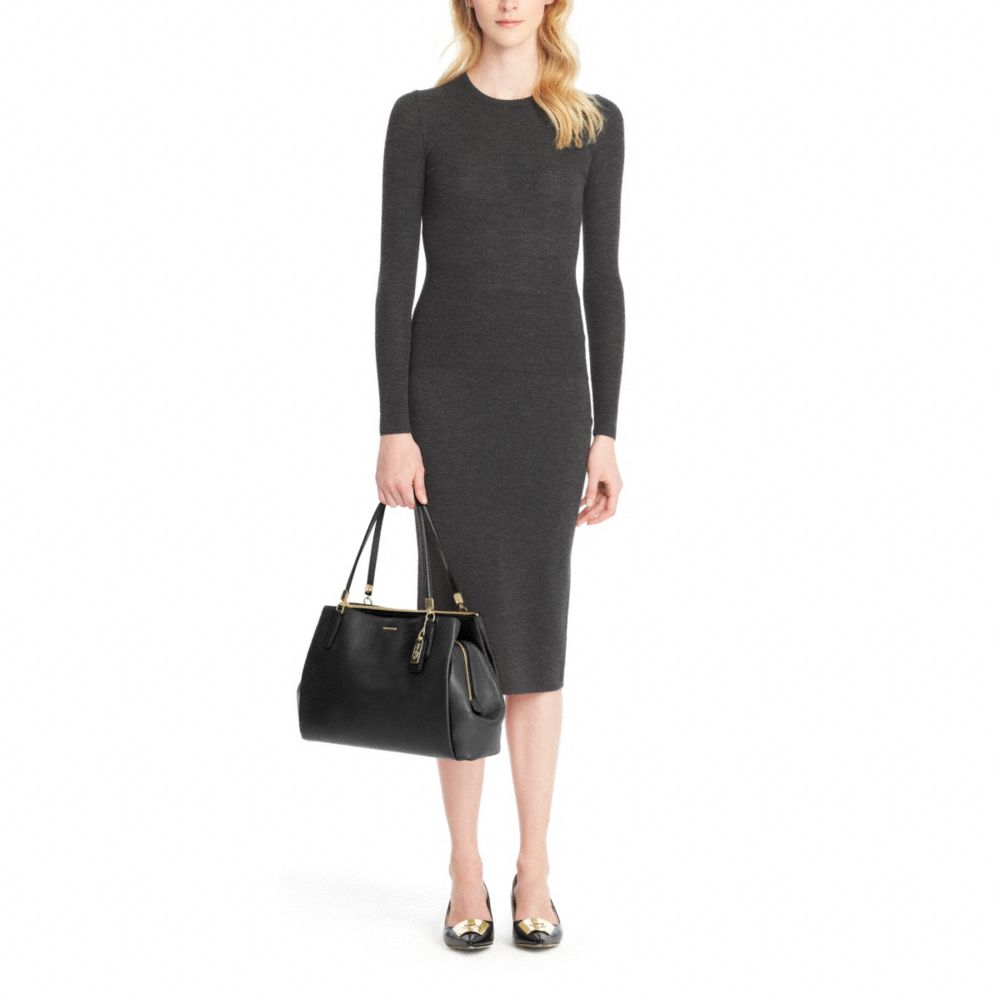 Details| | | Leather| Inside zip, cell phone and multifunction pockets| Middle zip compartment, zip and magnetic snap closures on side compartments| Handles with 8" drop| 15" (L) x 9 3/4" (H) x 4 3/4" (W)