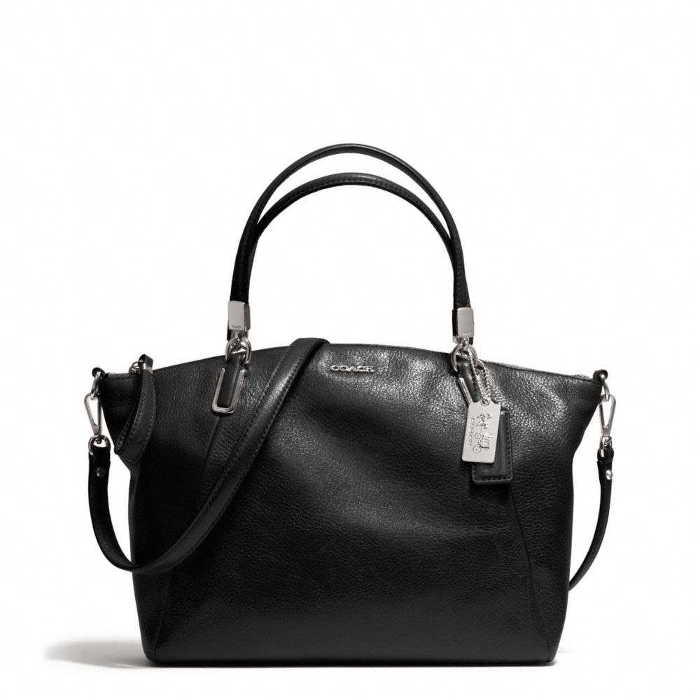 Details| | | Leather| Inside zip, cell phone and multifunction pockets| Zip-top closure, fabric lining| Handles with 5" drop| Longer strap with 21 1/2" drop for shoulder or crossbody wear| 13" (L) x 9" (H) x 3 1/4" (W)