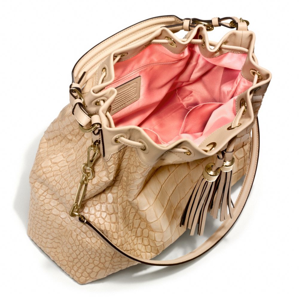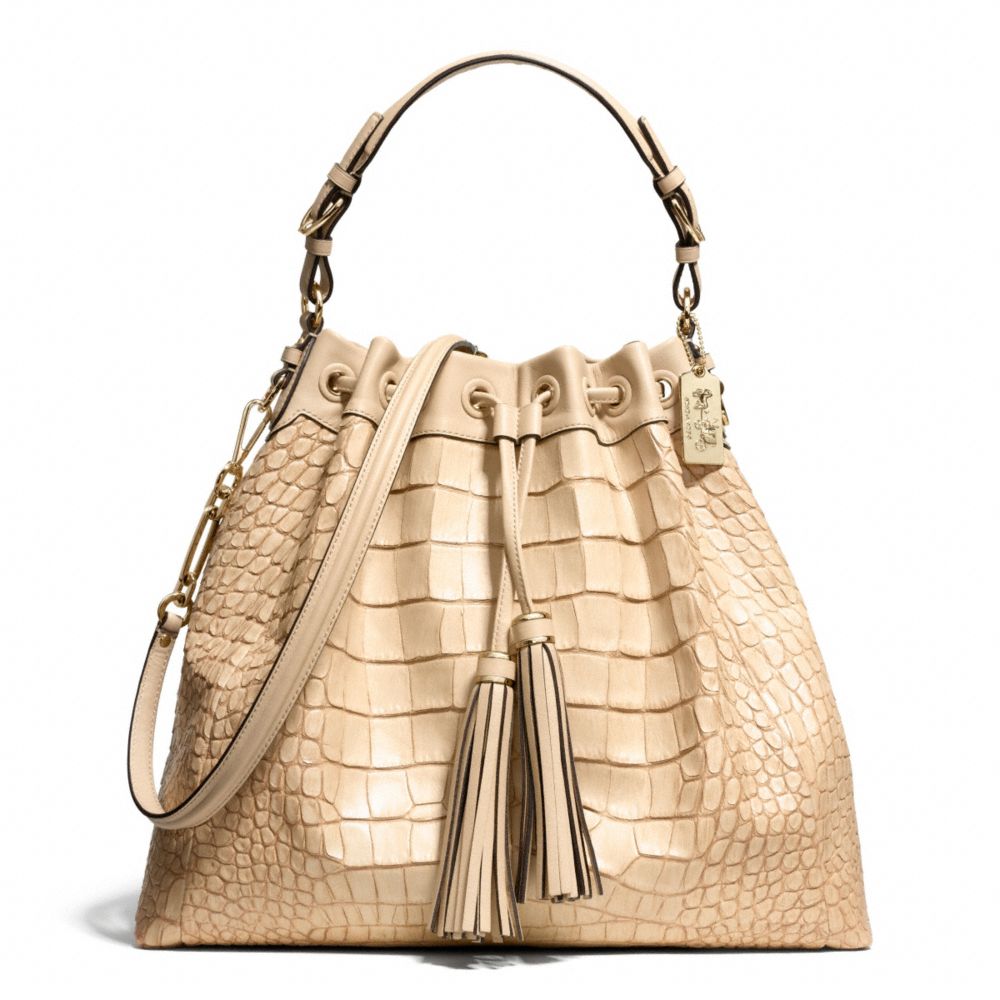 MADISON CROC EMBOSSED PINNACLE LARGE DRAWSTRING SHOULDER BAG