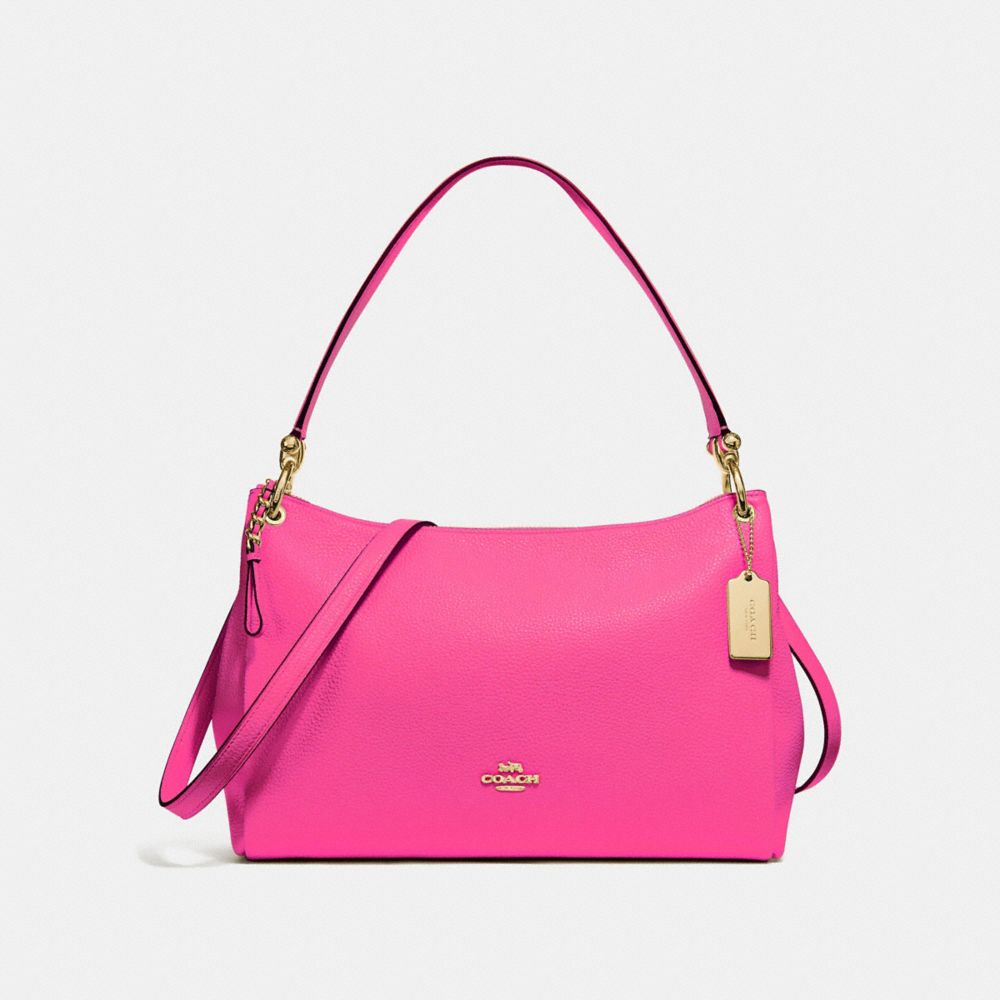 Refined pebble leather| Inside multifunction pocket| Zip-top closure, fabric lining| Handle with 8 3/4" drop| Detachable strap with 20" drop for shoulder or crossbody wear| 12 3/4" (L) x 8 3/4" (H) x 5 1/4" (W)