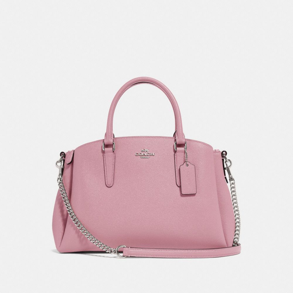 | Crossgrain leather| Inside multifunction pocket| Center zip compartment| Snap closure, fabric lining| Handles with 4" drop| Detachable strap with 20" drop for shoulder or crossbody wear| 12 1/2" (L) x 8 1/2" (H) x 5" (W)