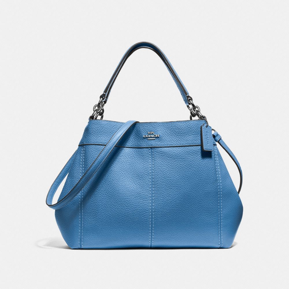 | Refined pebble leather| Inside zip and multifunction pockets| Snap closure, fabric lining| Handles with 5 1/2" drop| Detachable strap with 20" drop for shoulder or crossbody wear| 10 3/4" (L) x 9" (H) x 4 1/4" (W)