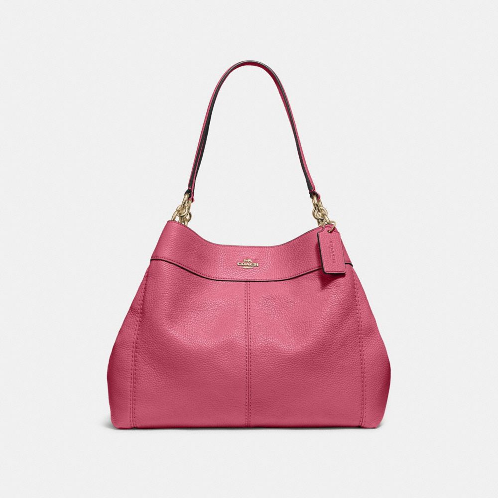 Refined pebble leather| Inside zip, cell phone and multifunction pockets| Center zip compartment| Snap closure, fabric lining| Handles with 9 1/2" drop| 13" (L) x 10 3/4" (H) x 5" (W)