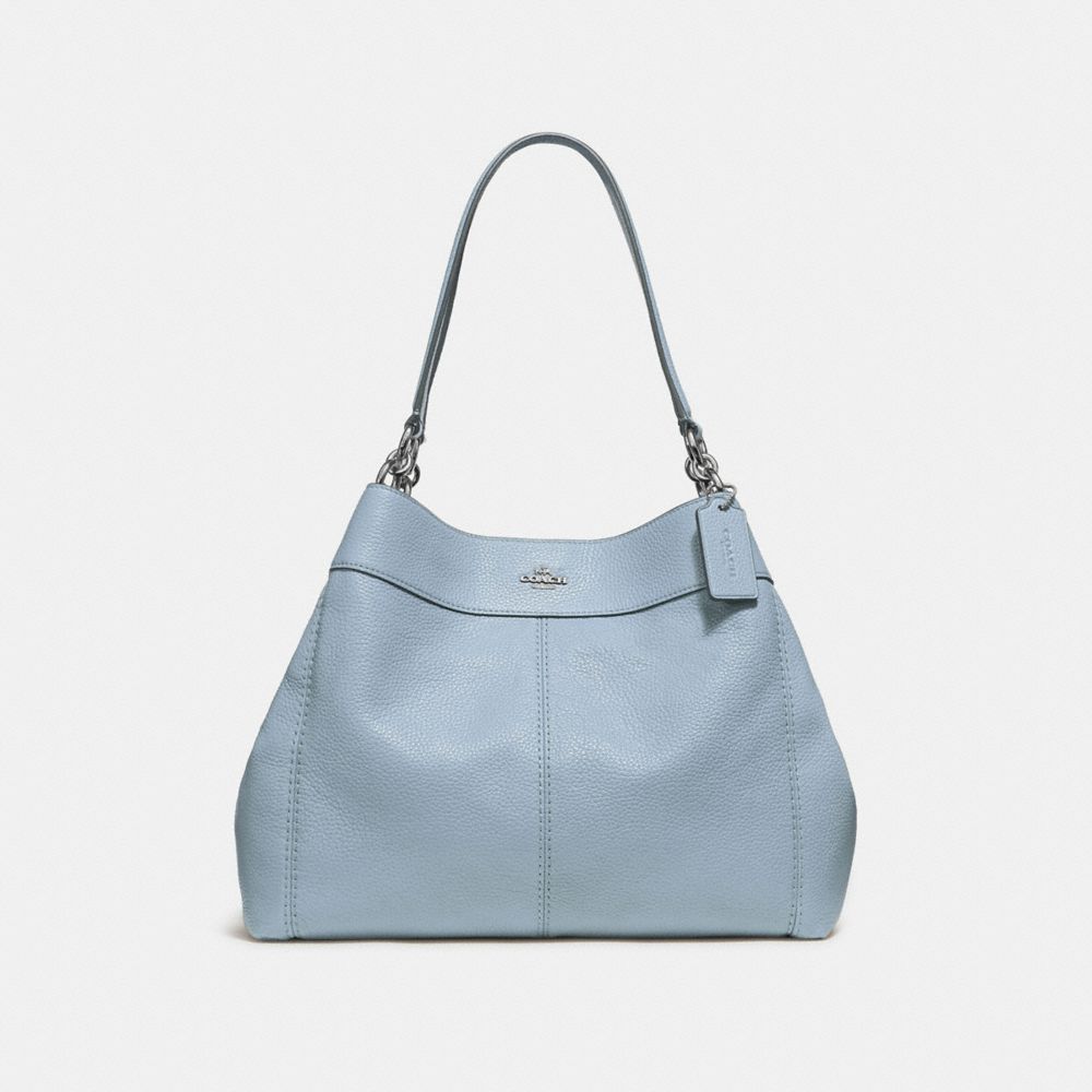 | Refined pebble leather| Inside zip, cell phone and multifunction pockets| Center zip compartment| Snap closure, fabric lining| Handles with 9 1/2" drop| 13" (L) x 10 3/4" (H) x 5" (W)