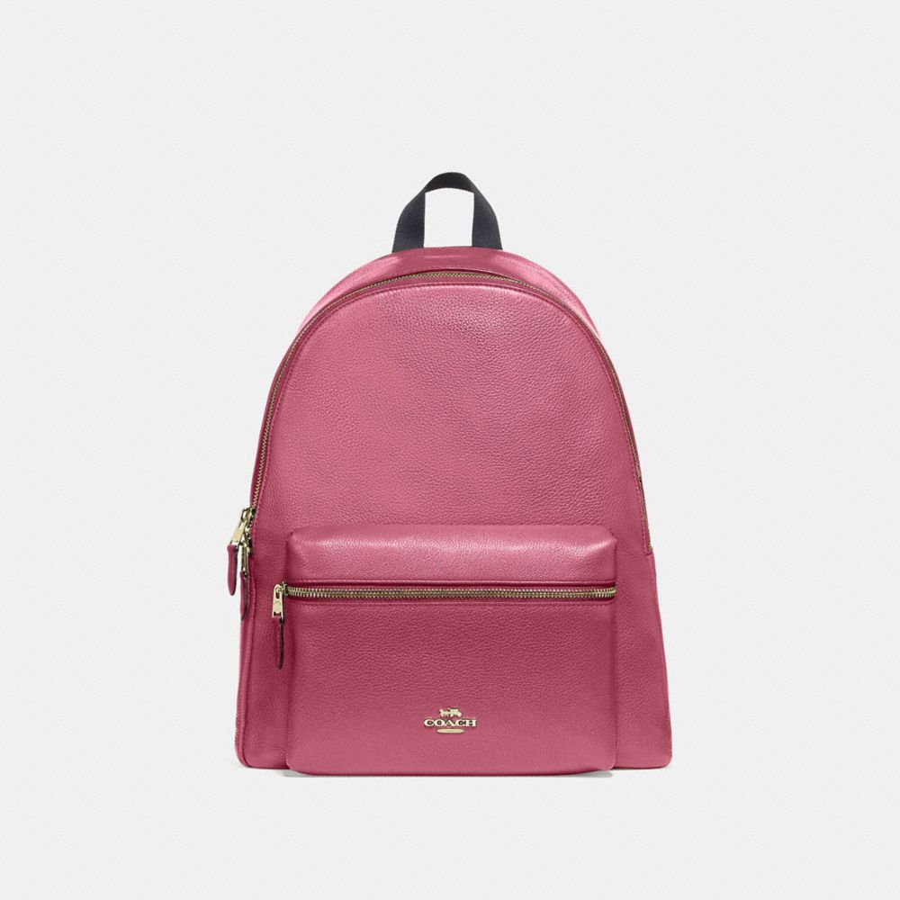 Refined pebble leather| Inside zip and multifunction pockets| Zip closure, fabric lining| Top handle with 2 1/2" drop| Outside zip pocket| Adjustable shoulder straps | 12" (L) x 14 3/4" (H) x 5" (W)