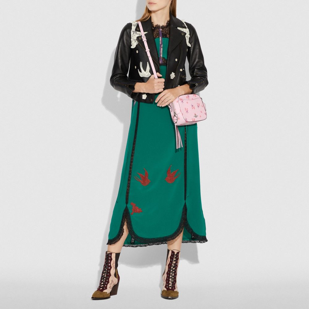 Crossgrain leather| Inside zip and multifunction pockets| Zip closure, fabric lining| Outside open pockets| Detachable strap with 22" drop for shoulder or crossbody wear| 8 1/4" (L) x 6 1/4" (H) x 3" (W)