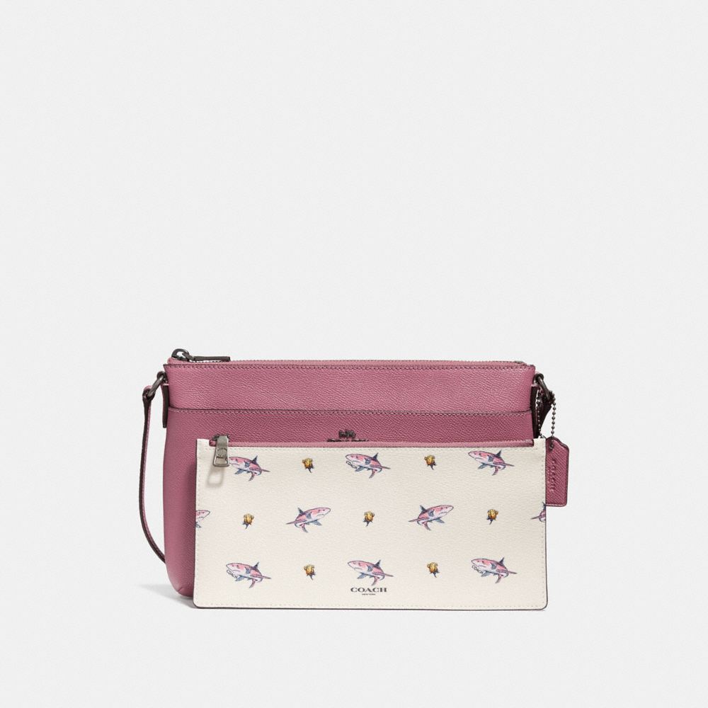 EAST/WEST CROSSBODY WITH POP-UP POUCH WITH SHARK PRINT