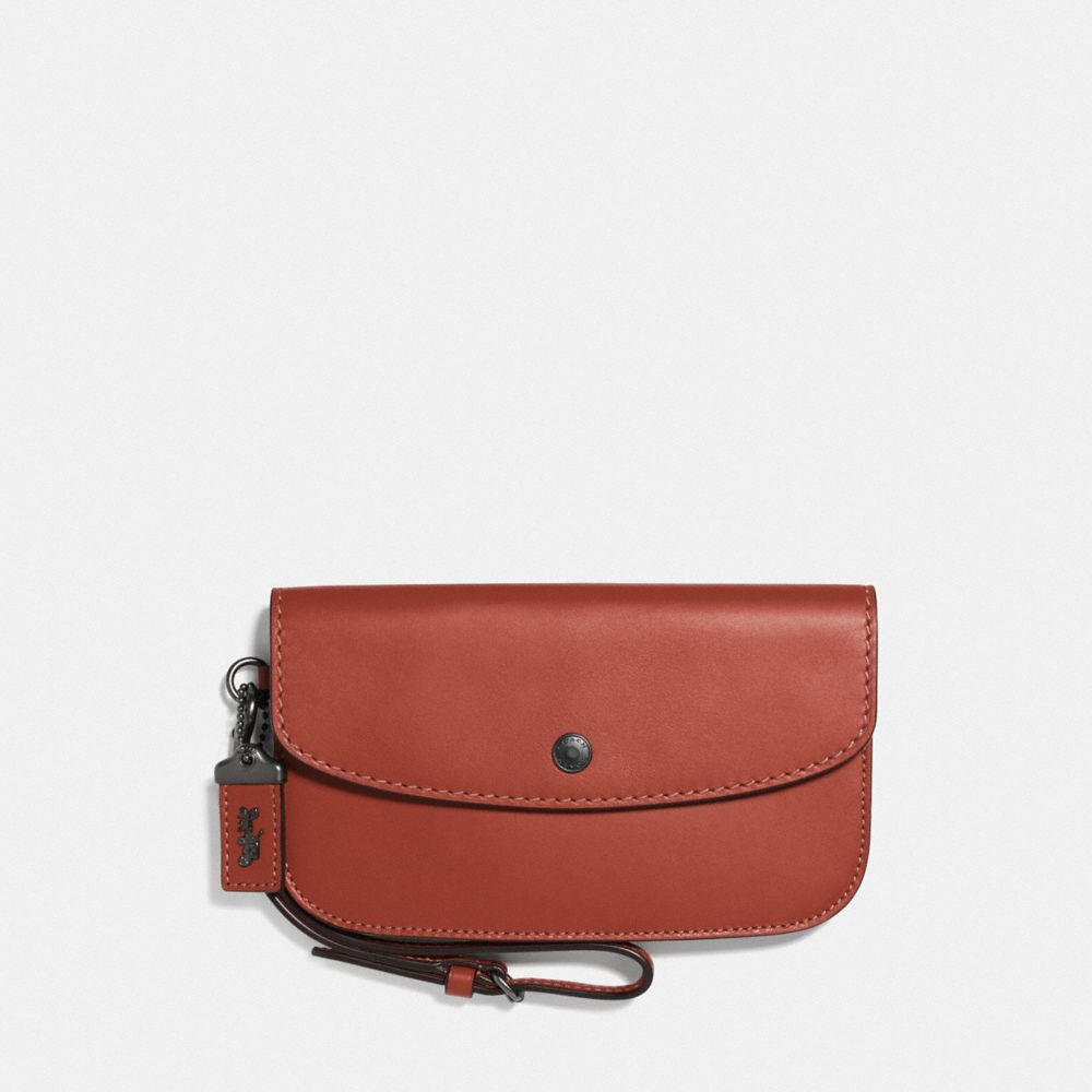 Glovetanned leather| Two credit card slots| Inside zip and open pockets| Snap closure| Outside slip pocket| Detachable wrist strap| 7 1/4" (L) x 4 1/4" (H) | Fits all phone sizes up to an iPhone X
