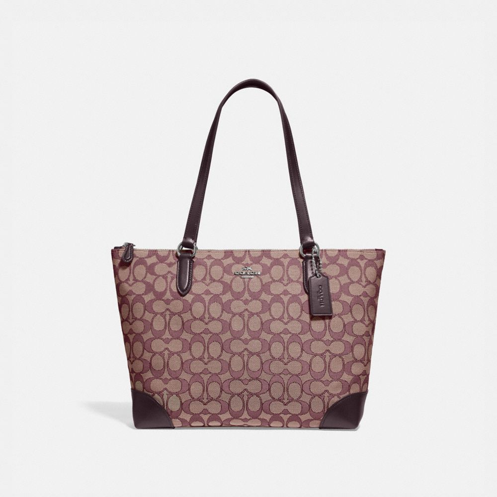 ZIP TOP TOTE IN SIGNATURE JACQUARD