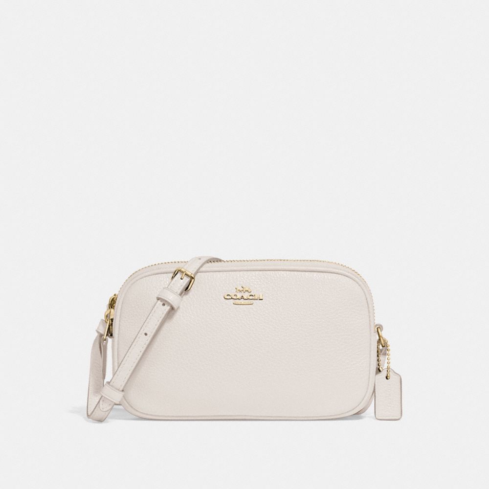 Refined pebble leather| Two credit card slots| Inside multifunction pocket| Double zip closure, fabric lining| Adjustable strap with 23" drop for shoulder or crossbody wear| 7 1/2" (L) x 4 1/2" (H) x 1 1/2" (W)
