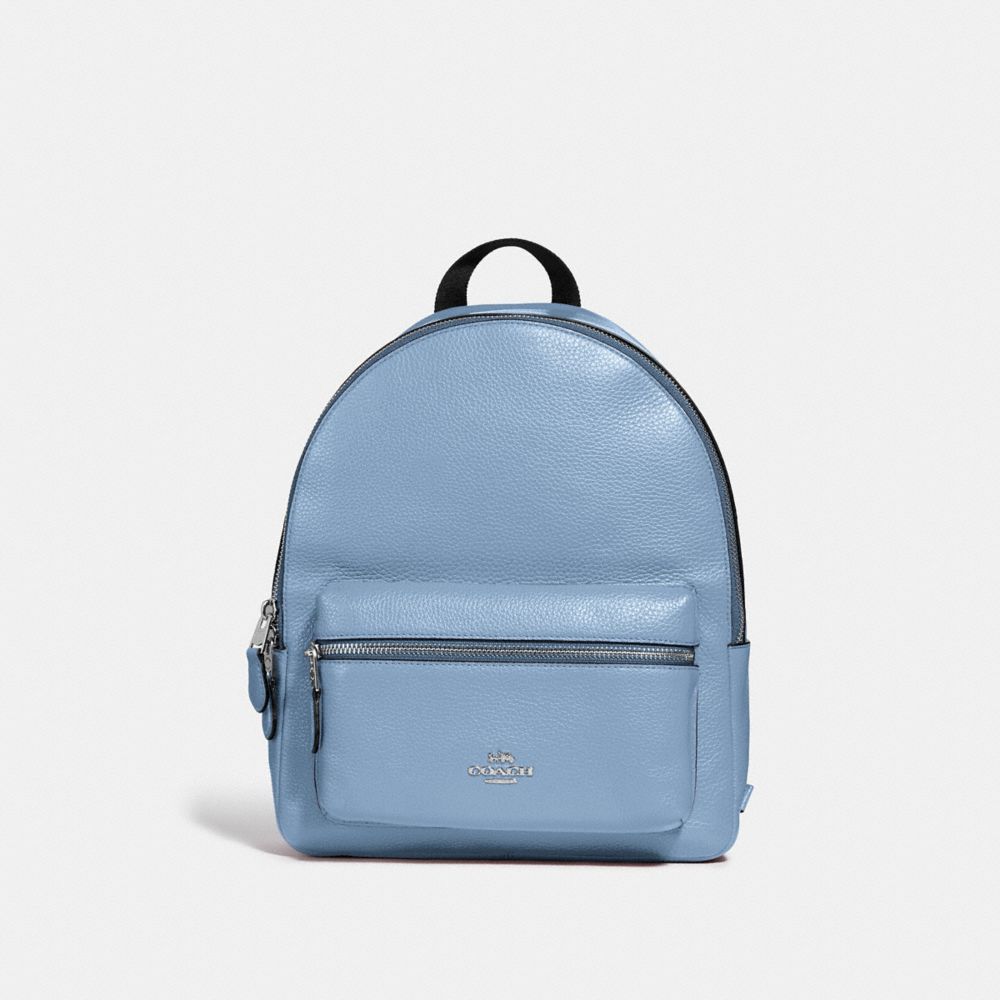 | Refined pebble leather| Inside zip pocket| Zip closure, fabric lining| Top handle with 2" drop| Outside zip pocket| Adjustable shoulder straps| 10 3/4" (L) x 12 1/2" (H) x 4" (W)