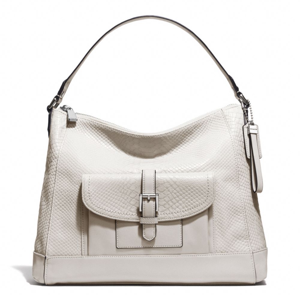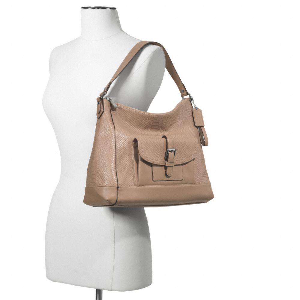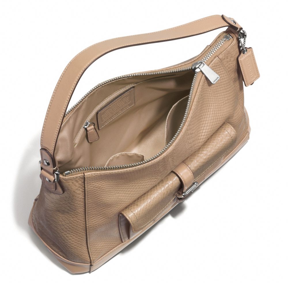 Details| | | Python-embossed leather| Inside zip, cell phone and multifunction pockets| Zip closure, fabric lining| Outside snap pocket| Handles with 6" drop| 12 3/4" (L) x 10 3/4" (H) x 3 1/4" (W)