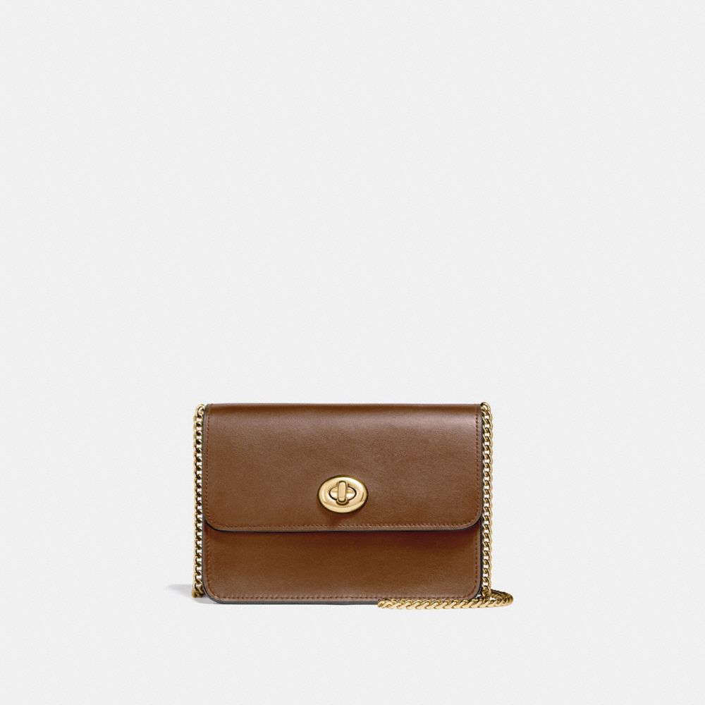 | Refined calf leather with signature coated canvas details| Inside zip pocket| Turnlock closure, fabric lining| Outside slip pocket| Strap with 22" drop for shoulder or crossbody wear| 7" (L) x 5" (H) x 3" (W)
