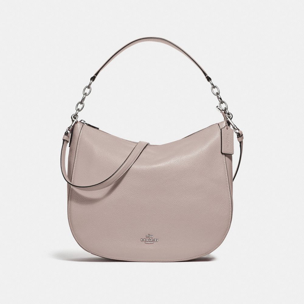 Refined pebble leather| Inside cell phone and multifunction pockets| Zip-top closure, fabric lining| Handle with 8 3/4" drop| Outside zip pocket| Detachable strap with 15 1/4" drop for shoulder wear| 13" (L) x 10 3/4" (H) x 4" (W)