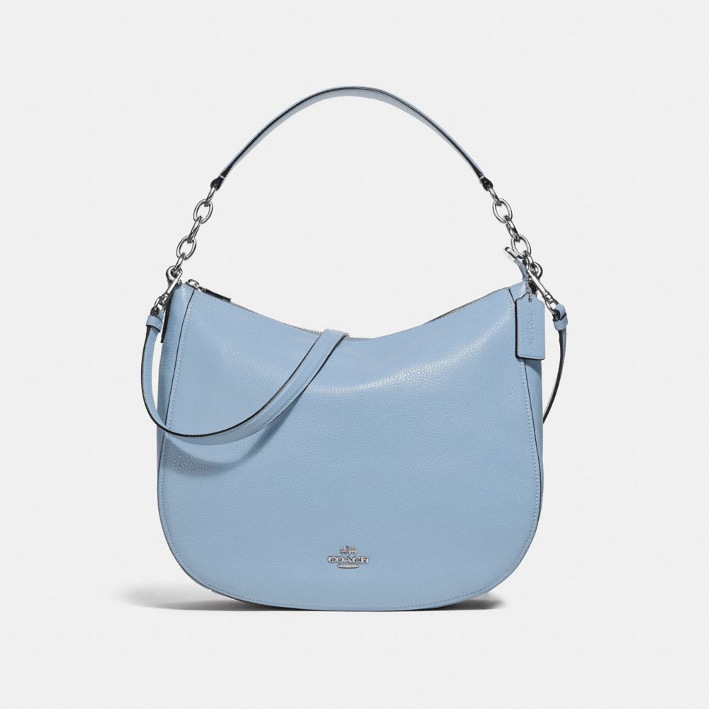 | Refined pebble leather| Inside cell phone and multifunction pockets| Zip-top closure, fabric lining| Handle with 8 3/4" drop| Outside zip pocket| Detachable strap with 15 1/4" drop for shoulder wear| 13" (L) x 10 3/4" (H) x 4" (W)