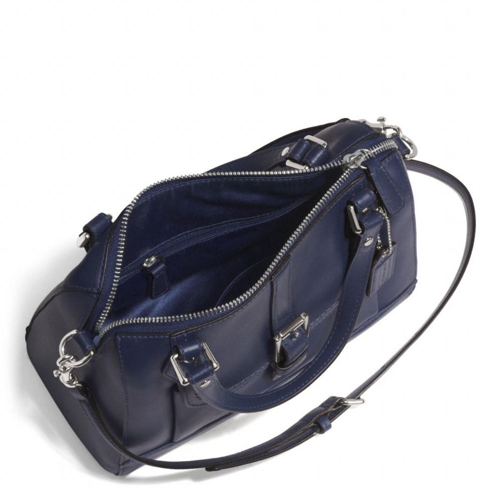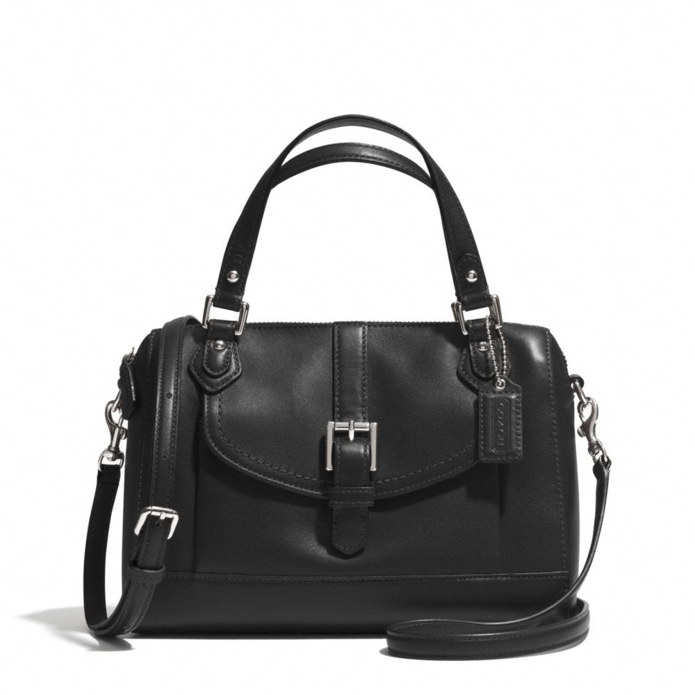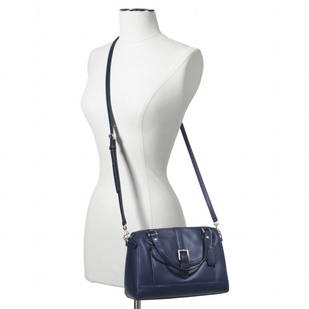 Details| | | Leather| Inside zip, cell phone and multifunction pockets| Zip-top closure, fabric lining| Handles with 4 1/2" drop| Outside magnetic snap pockets| Longer strap with 21 1/2" drop for shoulder wear| 9 1/2" (L) x 6 1/2" (H) x 4 1/2" (W)