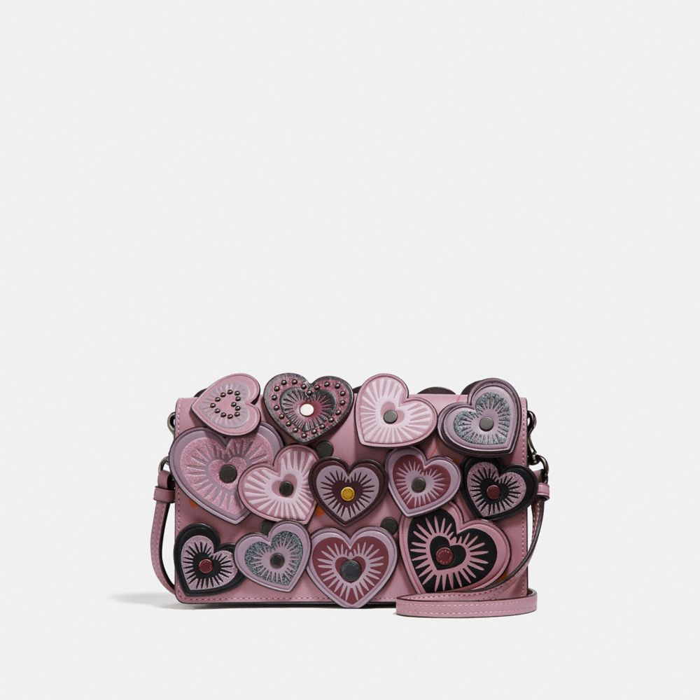 HAYDEN FOLDOVER CROSSBODY CLUTCH WITH HEARTS