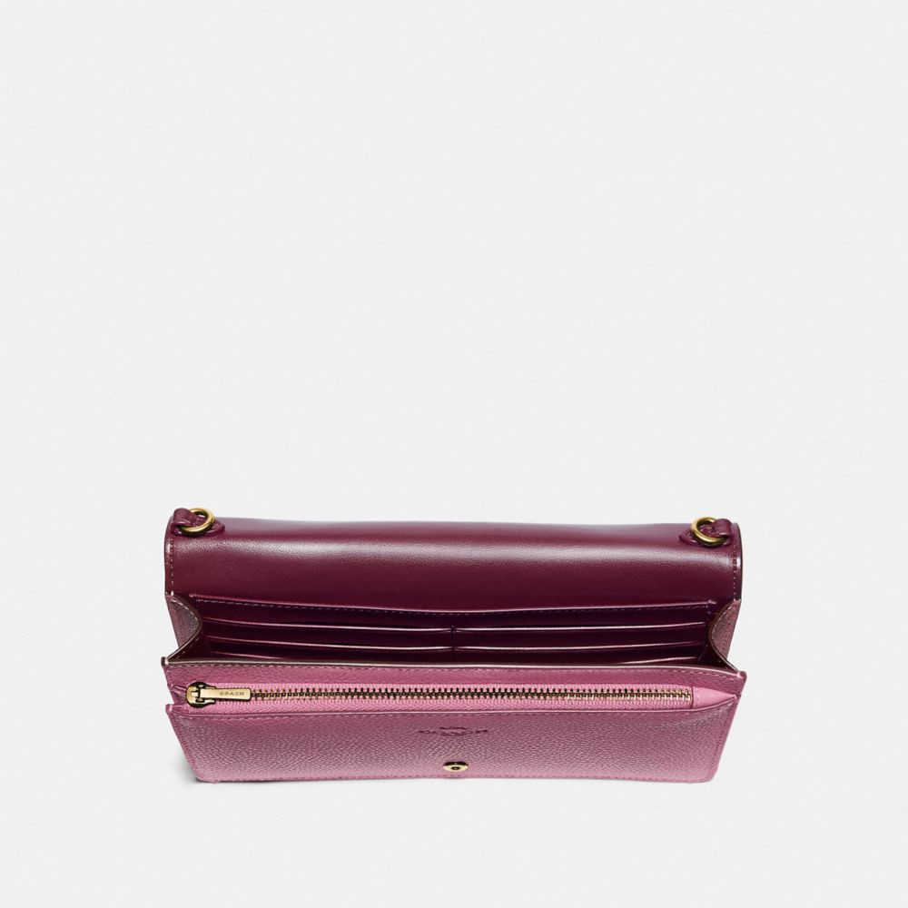 Polished pebble leather| Eight credit card slots| Full-length bill compartment| Inside zip pocket| Snap closure| Outside slip pocket| Detachable strap with 23" drop for shoulder or crossbody wear| 8" (L) x 4 3/4" (H) x 1 1/2" (W)