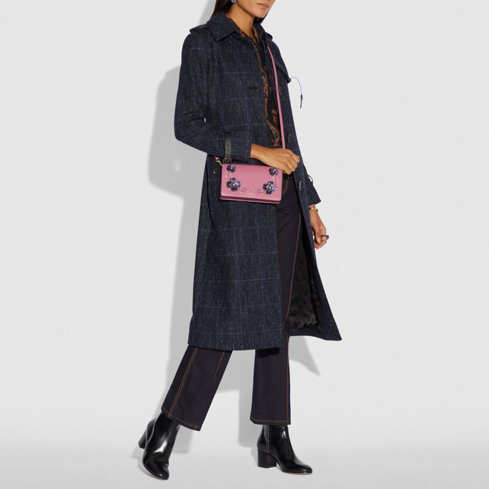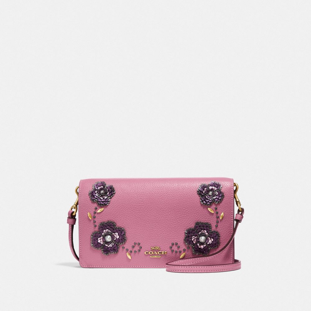 HAYDEN FOLDOVER CROSSBODY CLUTCH WITH LEATHER SEQUIN APPLIQUE