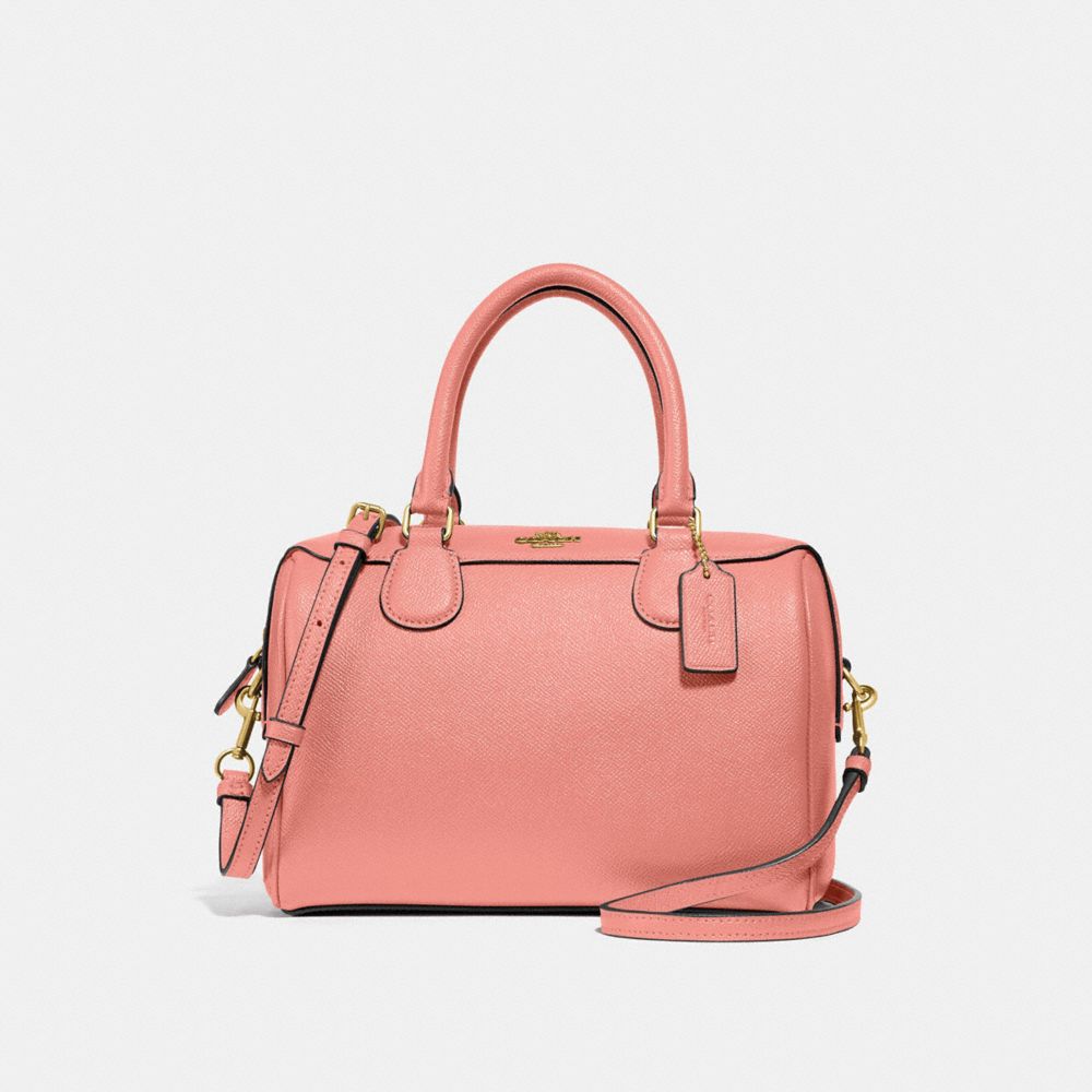 Crossgrain leather| Inside zip and multifunction pockets| Zip-top closure, fabric lining| Handles with 4" drop| Detachable strap with 23" drop for shoulder or crossbody wear| 9" (L) x 6 1/2" (H) x 5" (W)