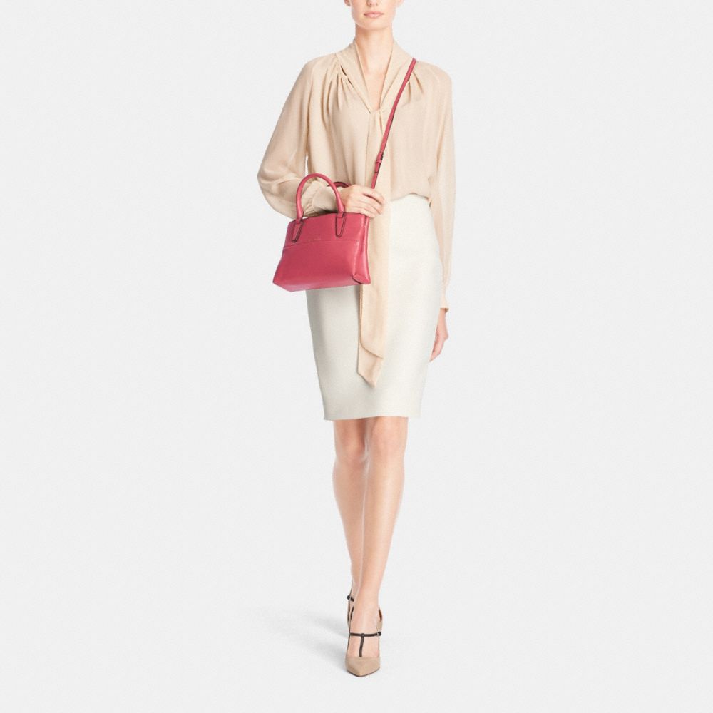 Details| | | Soft nappa leather| Inside zip, cell phone and multifunction pockets| Snap closures, fabric lining| Handles with 4 1/2" drop| Strap with 20" drop for shoulder or crossbody wear| 9 1/2" (L) x 6 3/4" (H) x 3" (W)