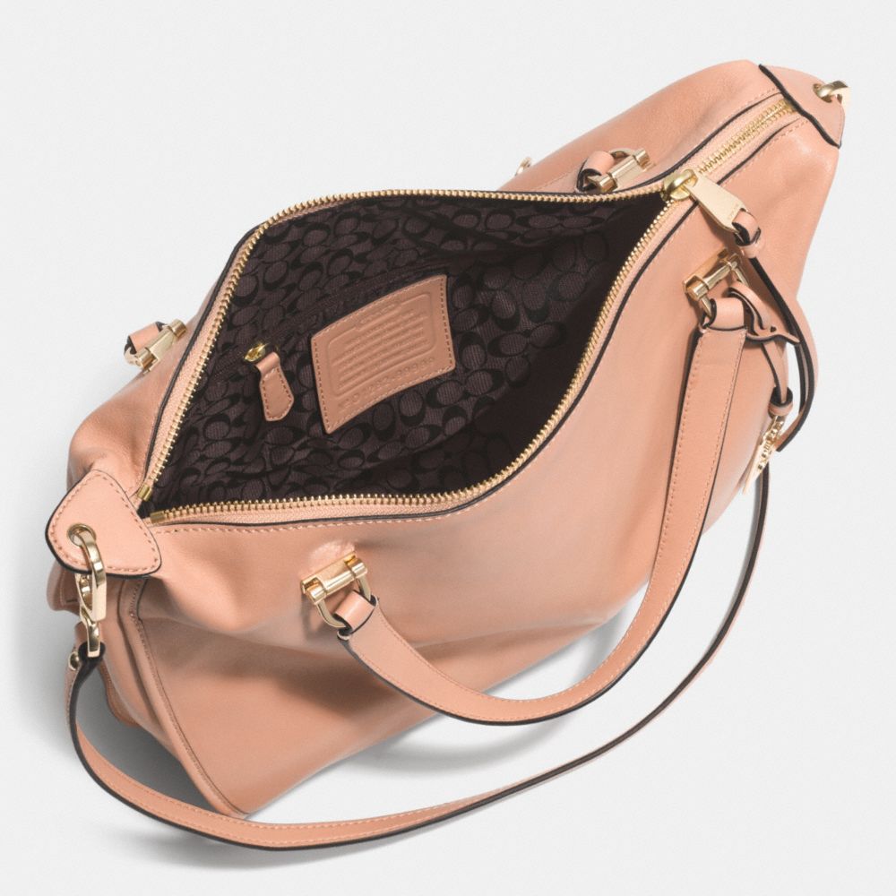 Details| | | Leather| Inside zip and multifunction pockets| Zip closure, fabric lining| Handles with 7" drop| Adjustable strap with 18"-21" drop| 13 1/2" (L) x 9 1/2" (H) x 4 3/4" (W)