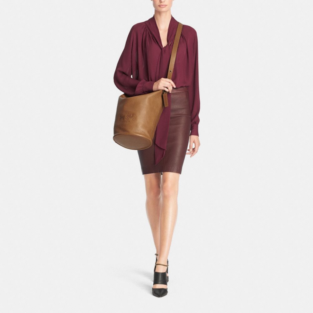 Details| | | Leather| Inside zip, cell phone and multifunction pockets| Zip-top closure, fabric lining| Long strap with 16" drop for shoulder or crossbody wear | 9 3/4" (L) x 13" (H) x 5 1/2" (W)