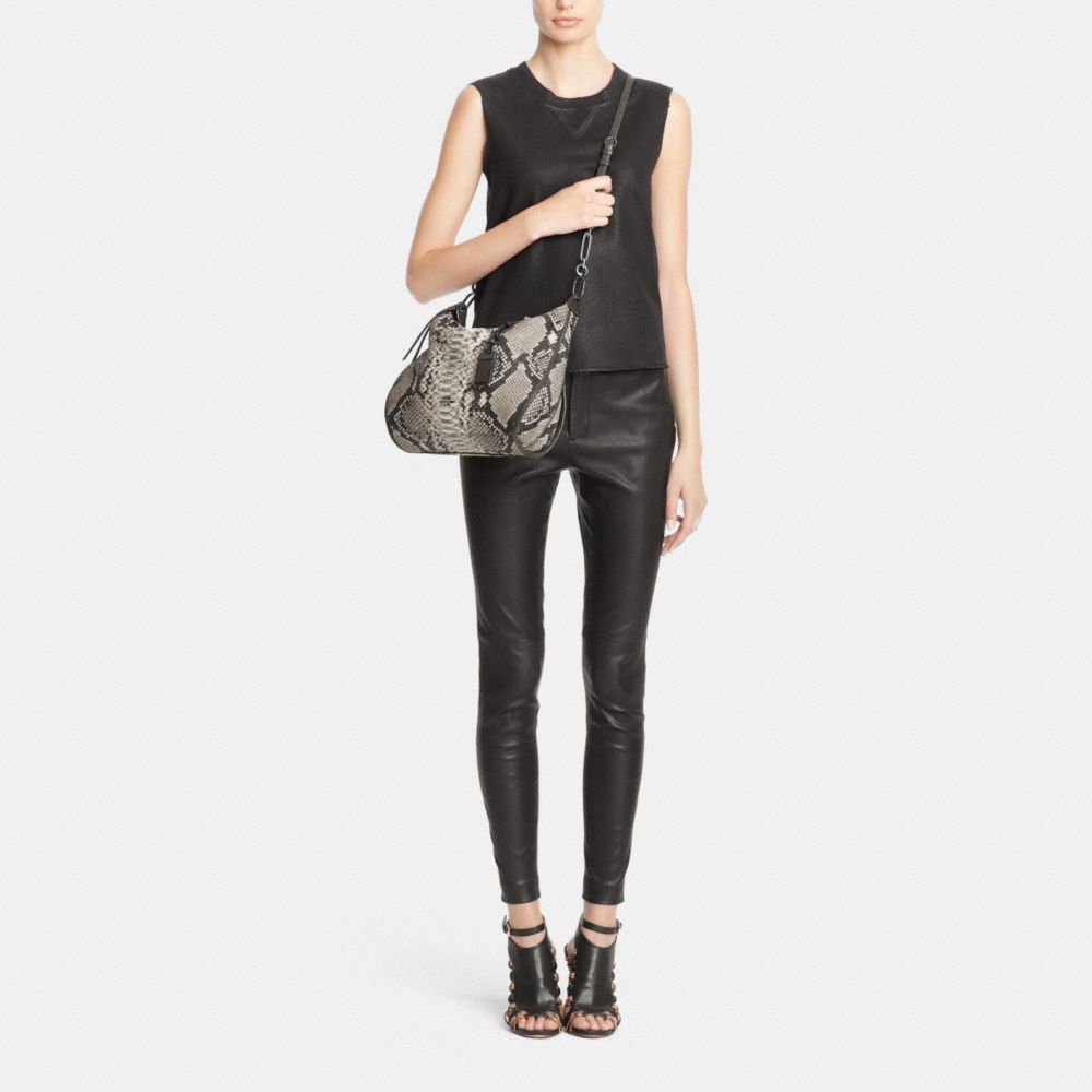 Details| | | Python-embossed leather| Inside zip and multifunction pockets| Zip closure, fabric lining| Handles with 7" drop| Adjustable strap with 18"-21" drop| 13 1/2" (L) x 9 1/2" (H) x 4 3/4" (W)