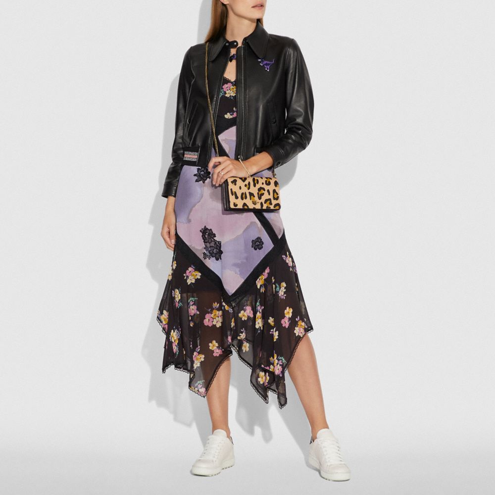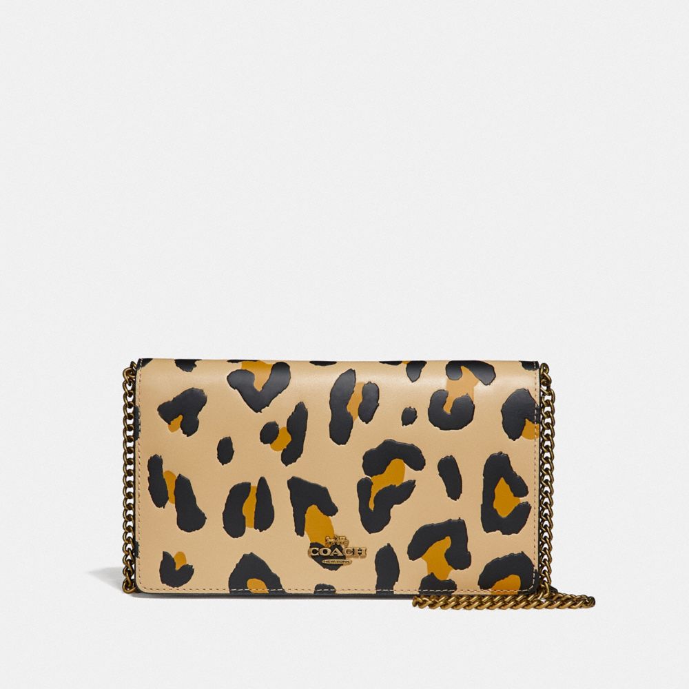 CALLIE FOLDOVER CHAIN CLUTCH WITH LEOPARD PRINT