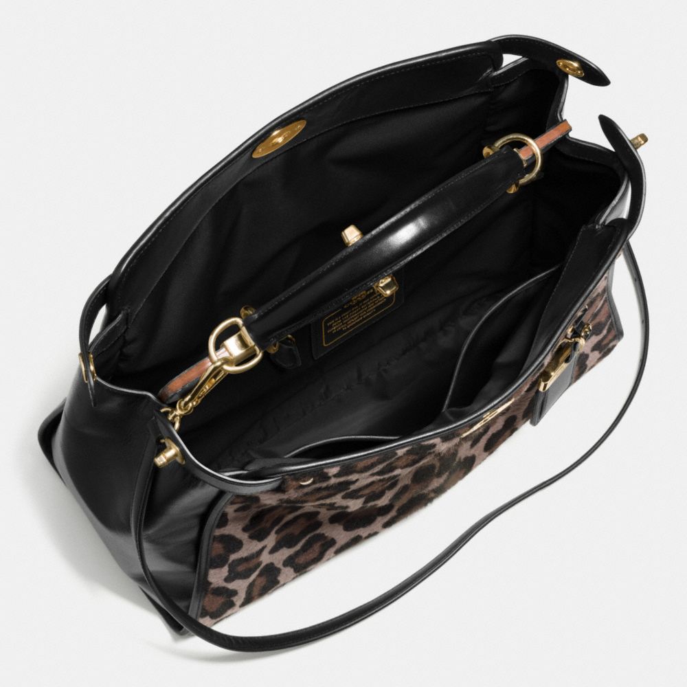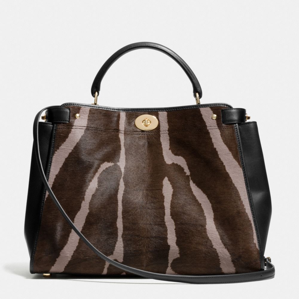 Details| | | Printed haircalf| Inside zip, cell phone and multifunction pockets| Turnlock closure, fabric lining| Handles with 3 1/2" drop| Longer strap with 18 3/4" drop for shoulder wear| 13 1/4" (L) x 9 3/4" (H) x 6 1/4" (W)