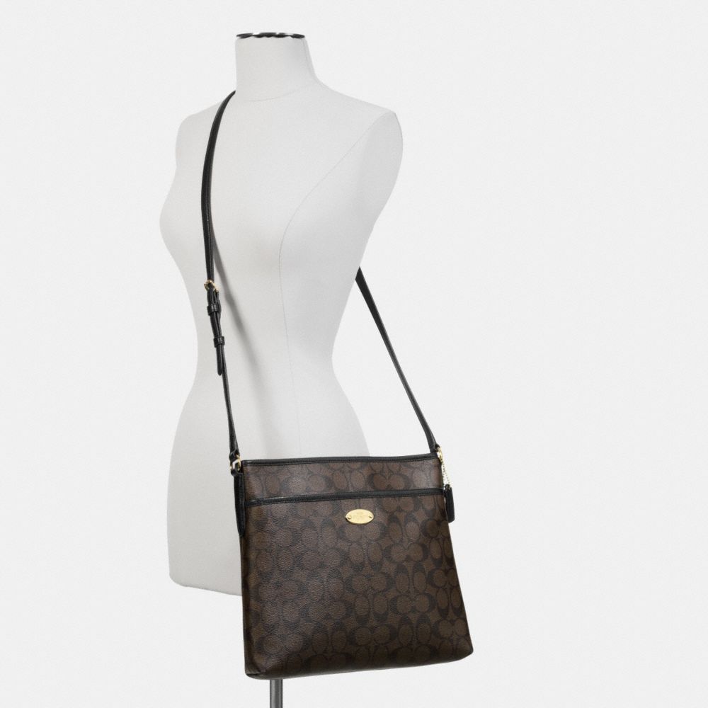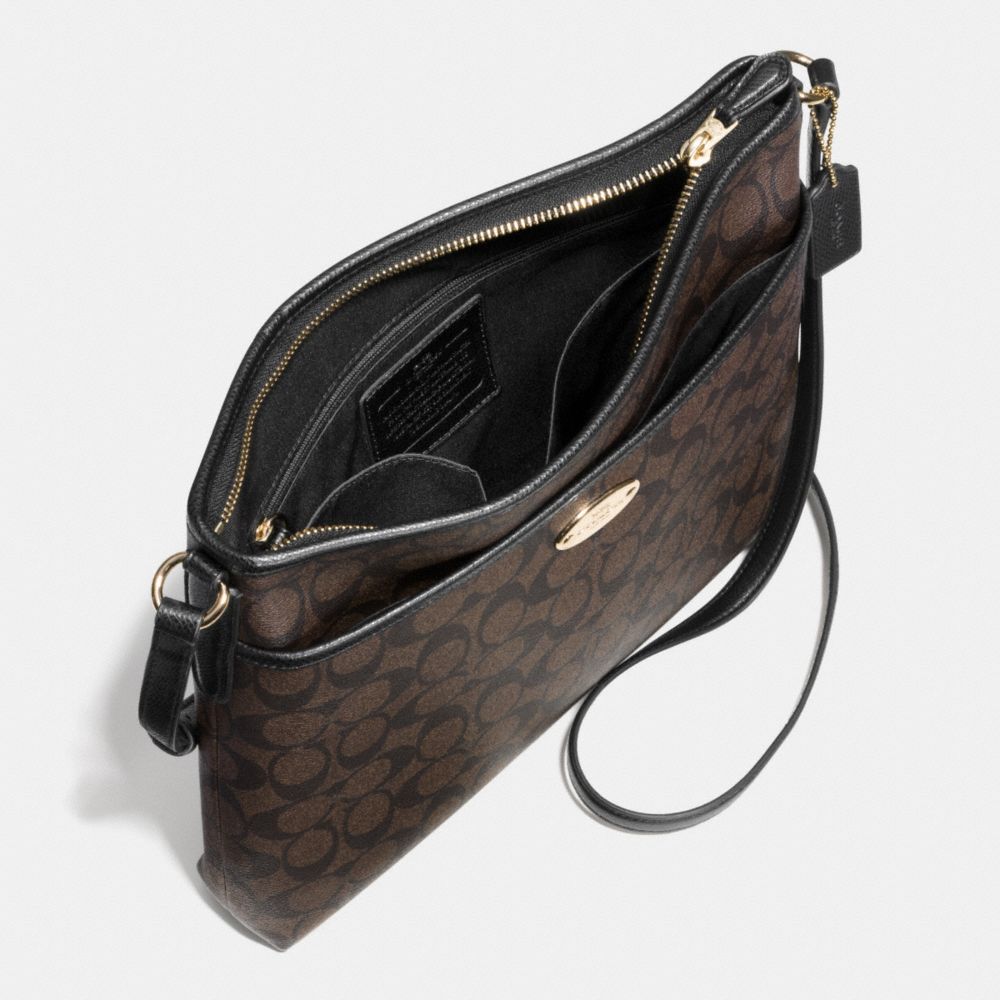 Details| | | Signature canvas with leather trim| Zip-top closure, fabric lining| Outside zip and open pockets| Adjustable strap for shoulder or crossbody wear| 10 1/4" (L) x 5 3/4" (H)
