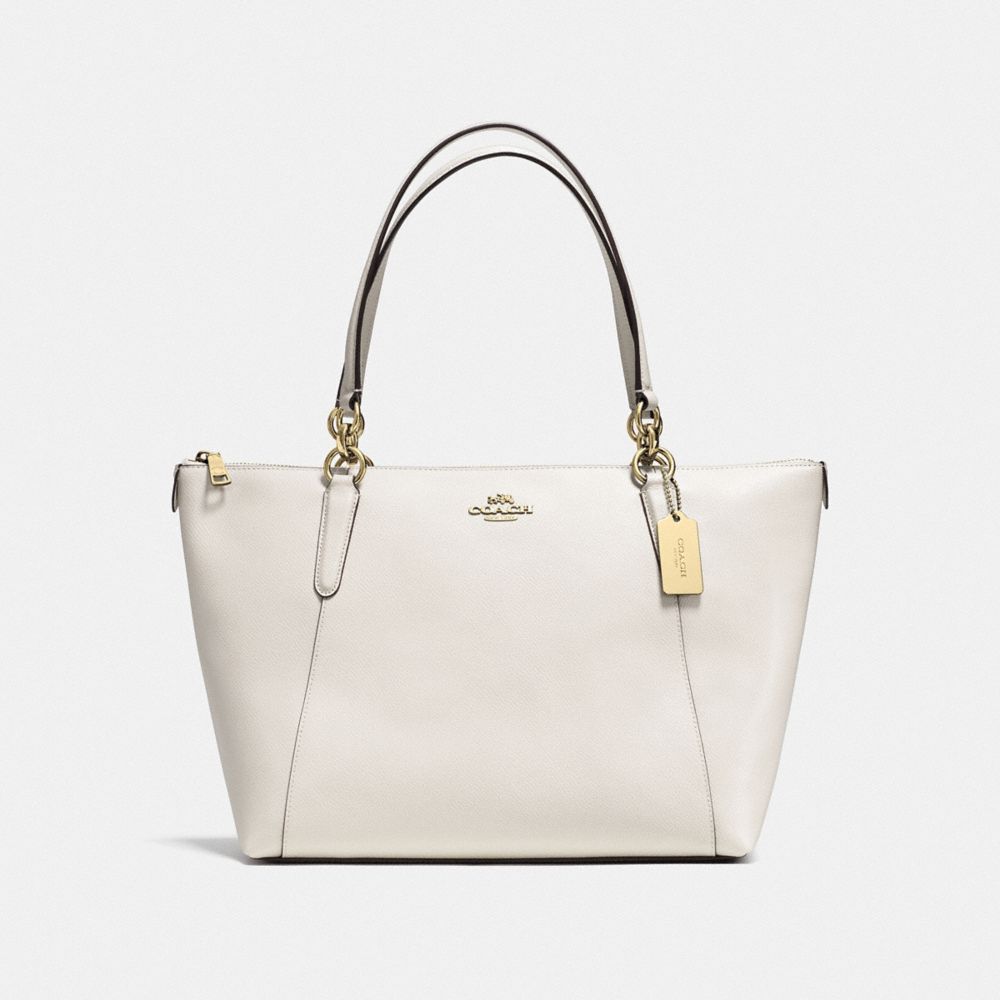 Crossgrain leather| Inside zip, cell phone and multifunction pockets| Zip-top closure, fabric lining| Handles with 9" drop| Outside slip pocket| 12 1/2" (L) x 9 3/4" (H) x 5" (W)