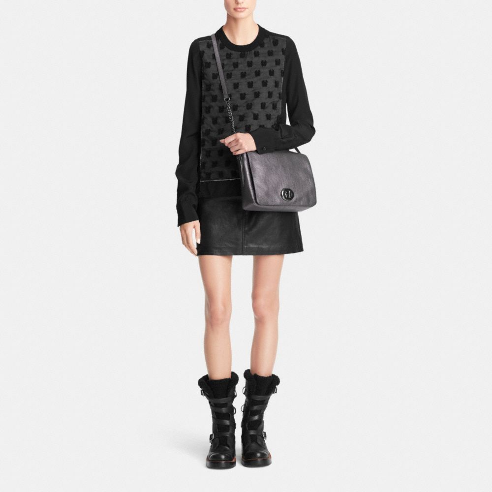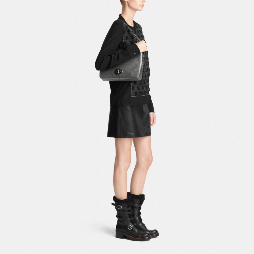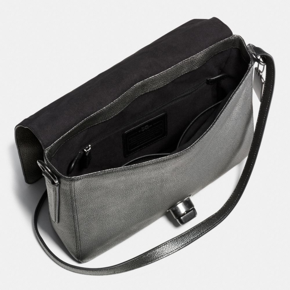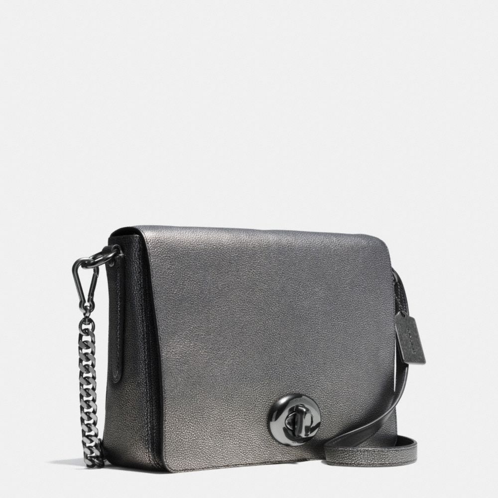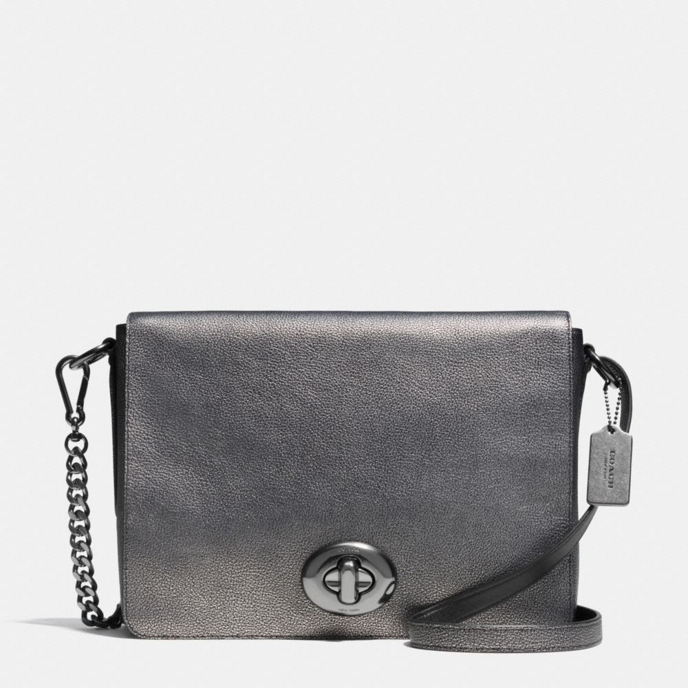 TURNLOCK SHOULDER FLAP BAG IN METALLIC PEBBLE LEATHER