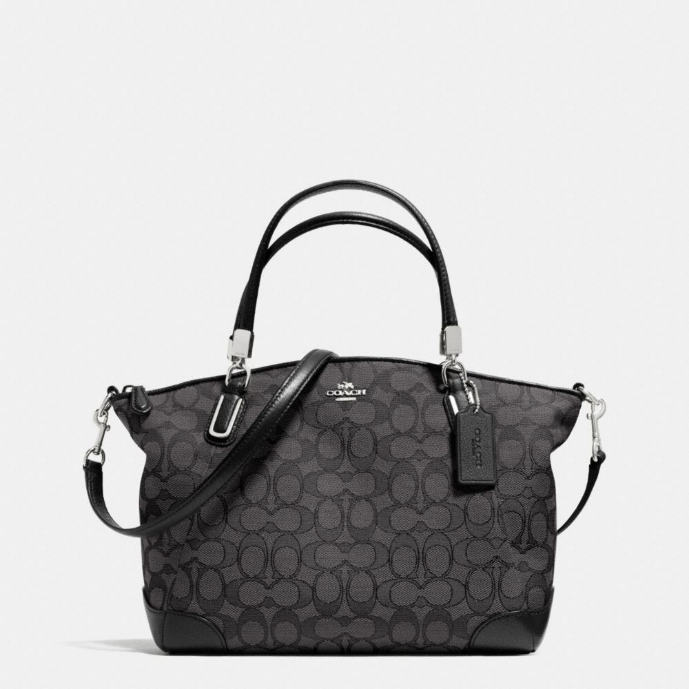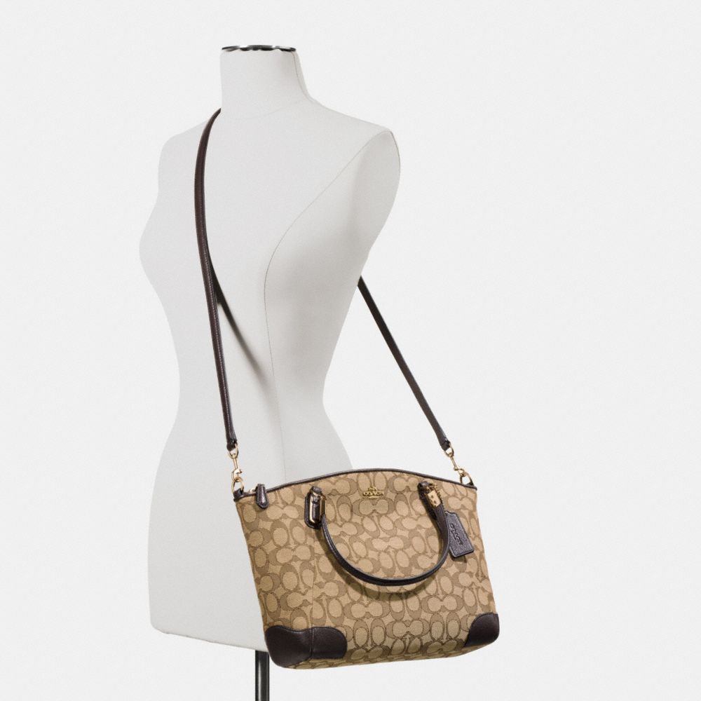 SMALL KELSEY SATCHEL IN SIGNATURE WITH LEATHER TRIM