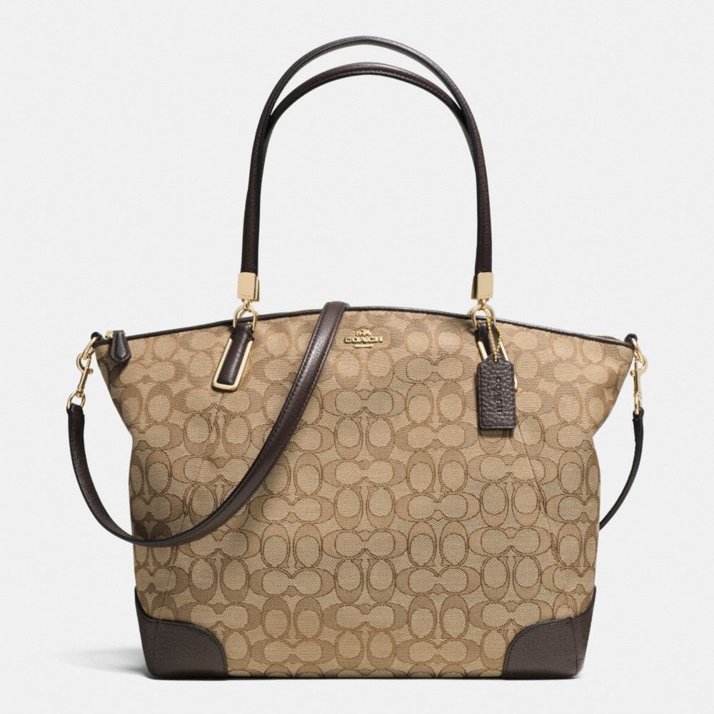 Details| | | Signature canvas with leather trim| Inside multifunction pocket| Zip-top closure, fabric lining| Handles with 5" drop| Long strap for shoulder or crossbody wear| 12 1/4" (L) x 7 1/2" (H) x 4 3/4" (W)