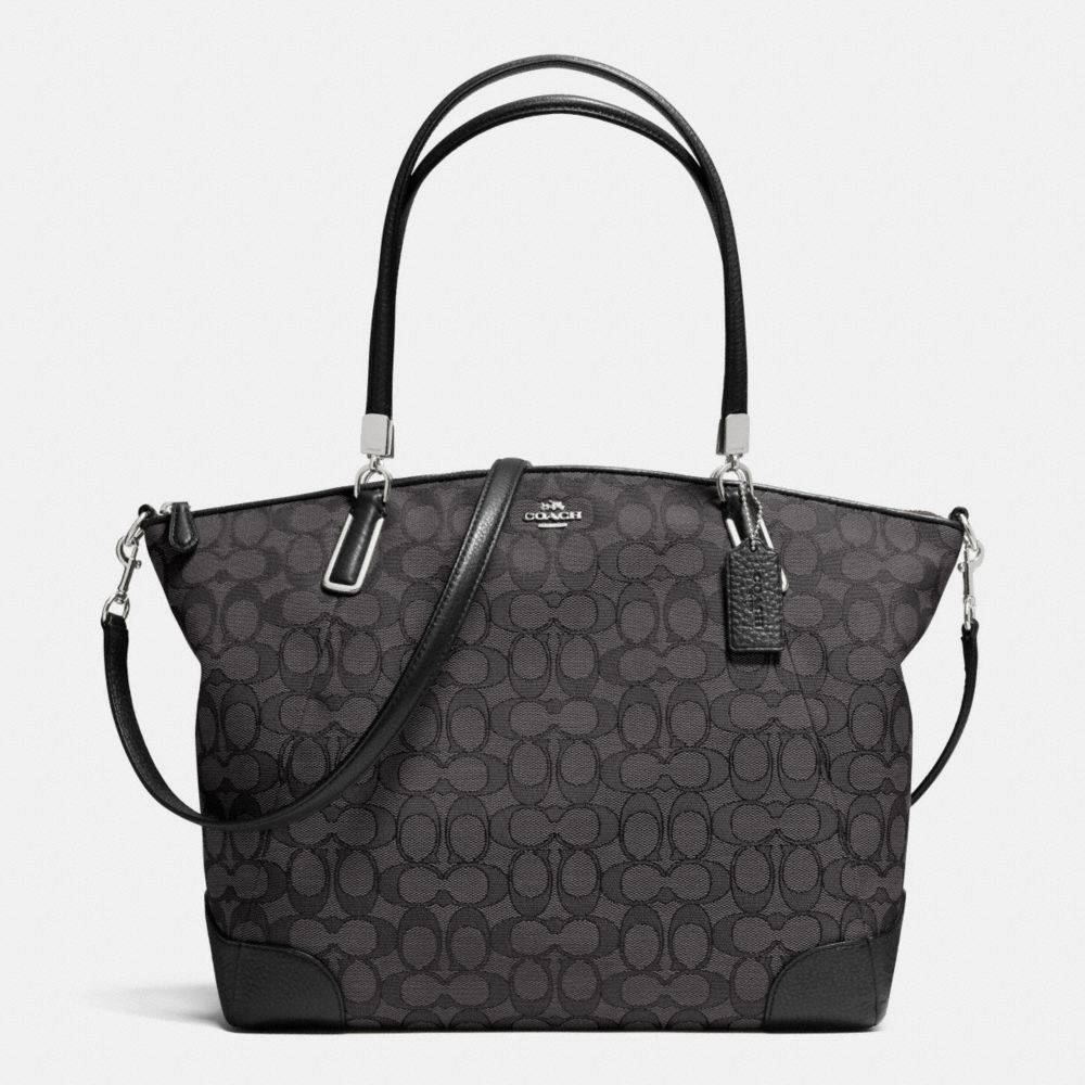 Details| | | Signature canvas with leather trim| Inside multifunction pocket| Zip-top closure, fabric lining| Handles with 5" drop| Long strap for shoulder or crossbody wear| 12 1/4" (L) x 7 1/2" (H) x 4 3/4" (W)