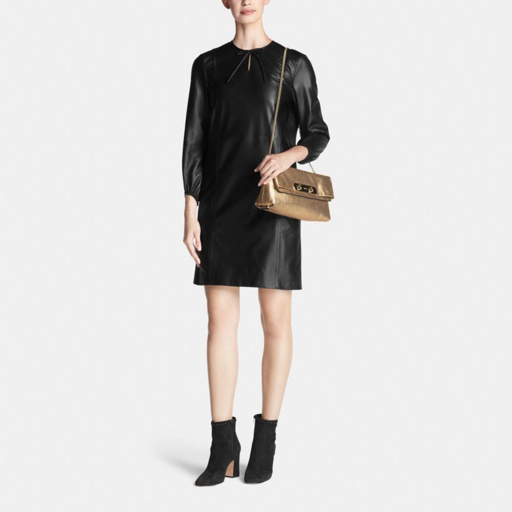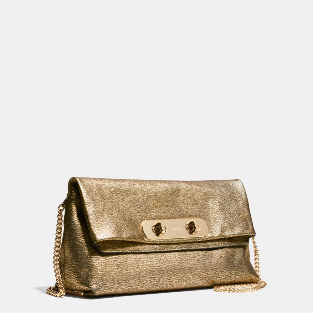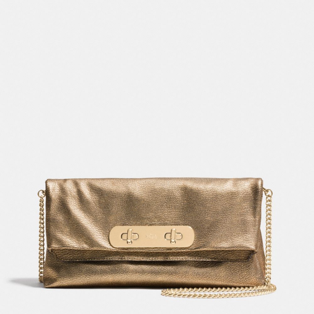 COACH SWAGGER CLUTCH IN METALLIC PEBBLE LEATHER