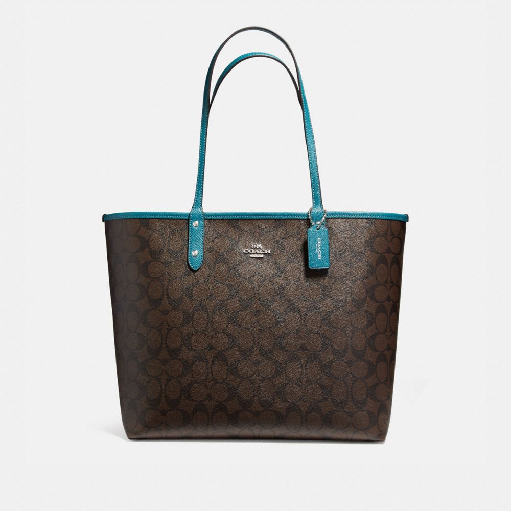 REVERSIBLE CITY TOTE IN SIGNATURE COATED CANVAS