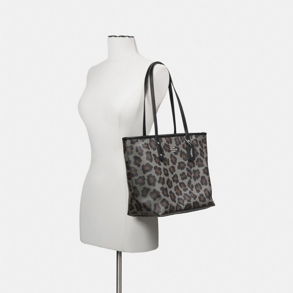 CITY ZIP TOTE IN OCELOT PRINT COATED CANVAS