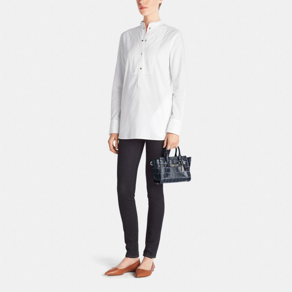 COACH SWAGGER 20 IN CROC EMBOSSED DENIM LEATHER