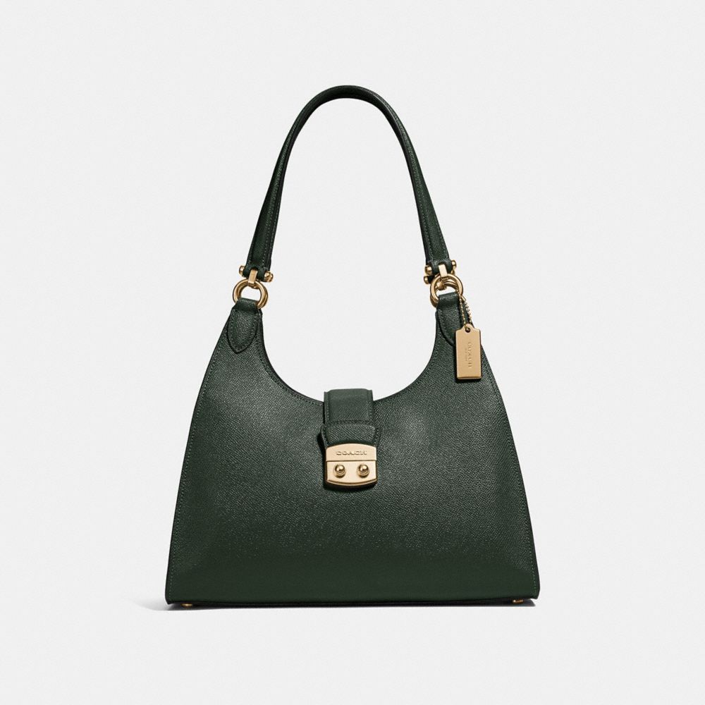 | Crossgrain leather| Inside multifunction pocket| Center zip compartment| Push button closure, fabric lining| Handle with 9 1/2" drop| 12 1/4" (L) x 7" (H) x 5 1/4" (W)