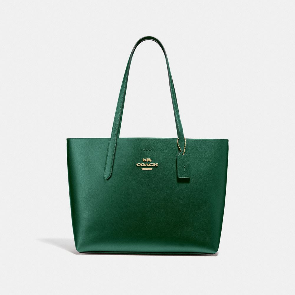 Metallic double face leather| Inside zip pocket| Snap closure| Handles with 10" drop| 13 3/4" (L) x 11" (H) x 5" (W)