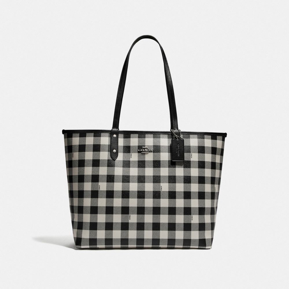 REVERSIBLE CITY TOTE WITH GINGHAM PRINT