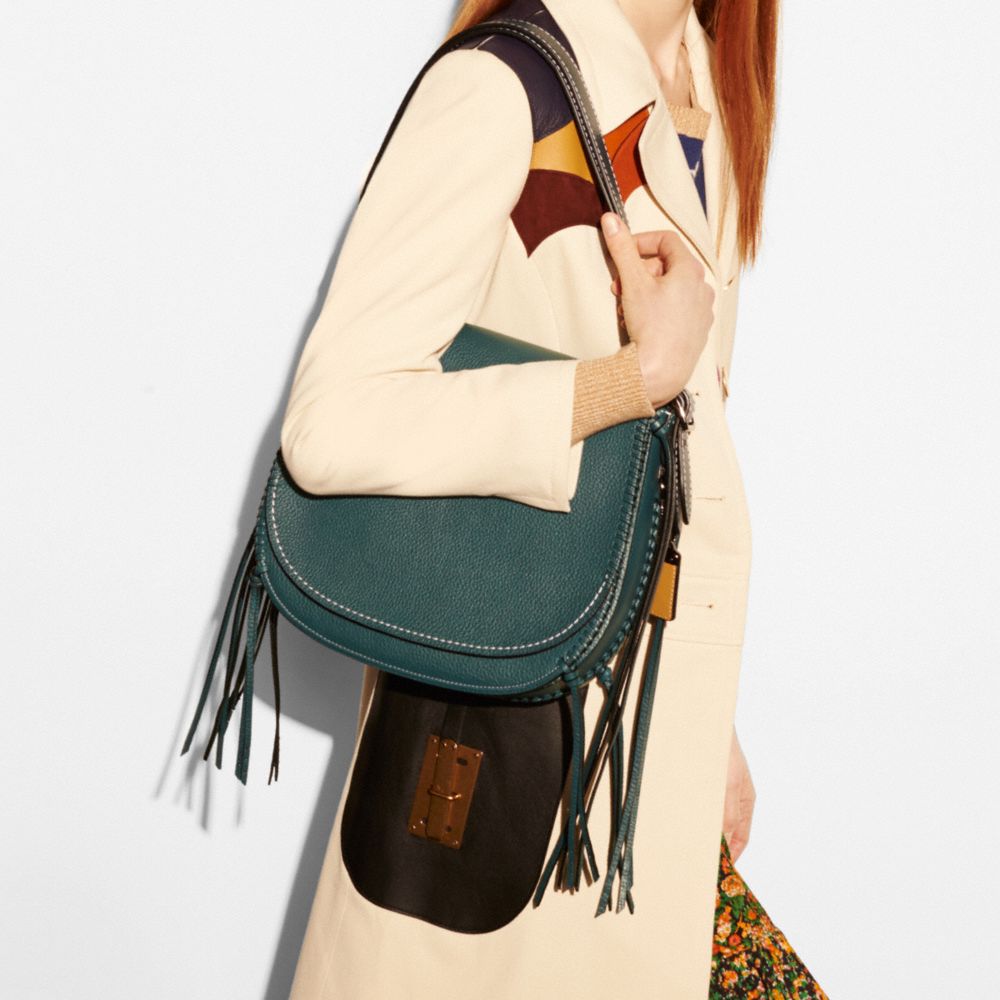 Pebble leather| Inside zip and multifunction pockets| Flap closure, leather lining| Four-hole adjustable strap doubles up for three ways to wear: short or long on the shoulder or crossbody style| 10 3/4" (L) x 9 3/4" (H) x 3 1/2" (W)