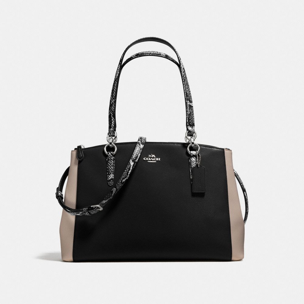 CHRISTIE CARRYALL IN CROSSGRAIN LEATHER WITH EXOTIC-EMBOSSED TRIM