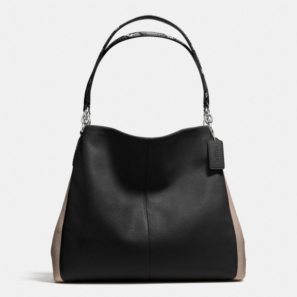 PHOEBE SHOULDER BAG IN EXOTIC EMBOSSED LEATHER TRIM