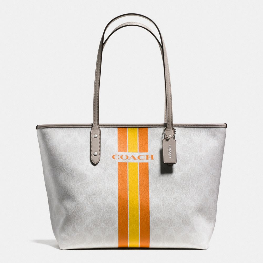 COACH VARSITY STRIPE CITY ZIP TOTE IN SIGNATURE